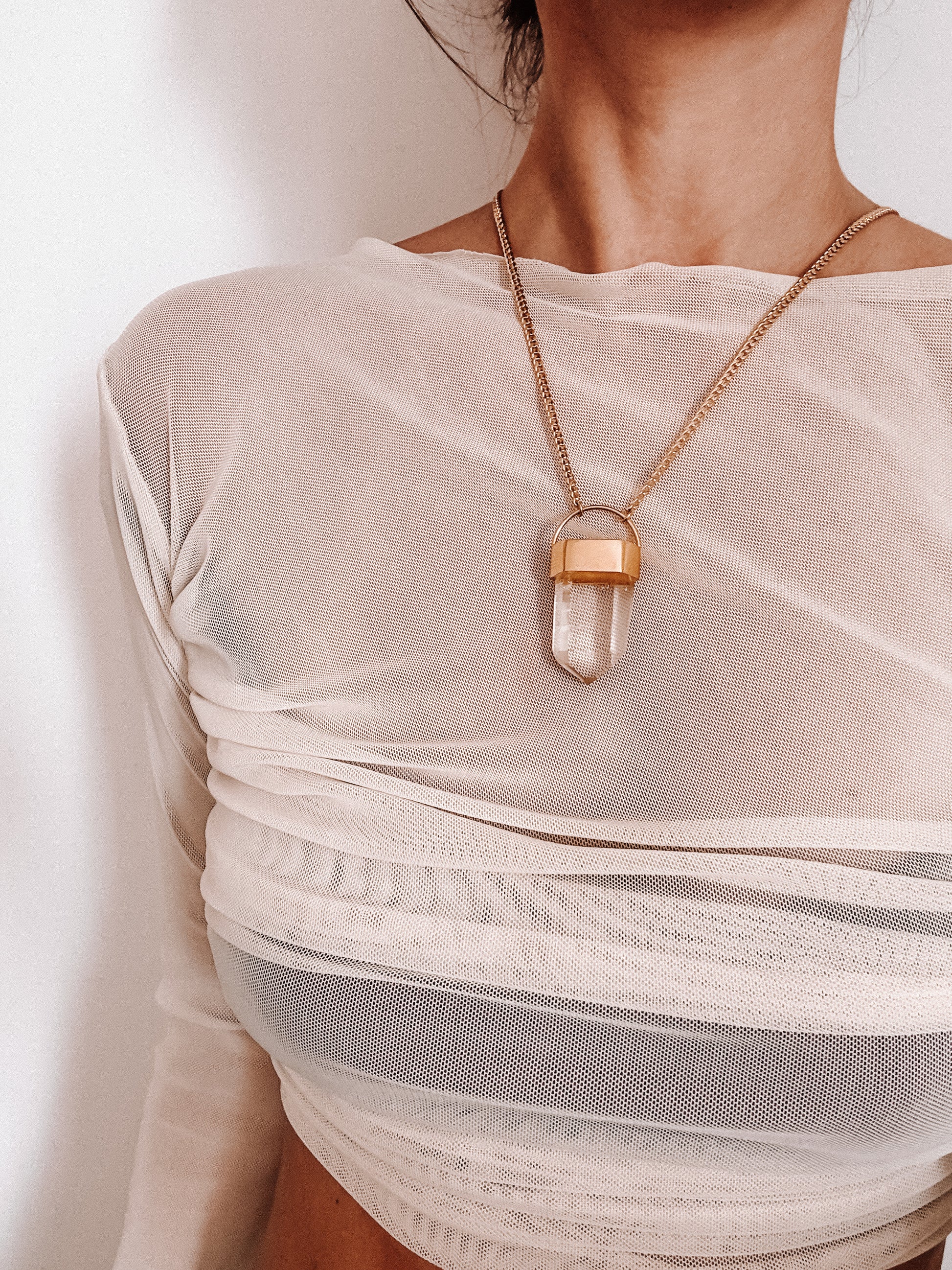 El cuarzo translúcido purifica, equilibra y potencia la vibración de quien lo porta. Favorece la conexión espiritual, la intuición y la manifestación de intenciones. Es un canal de luz que armoniza todos los chakras y multiplica la energía de las demás piedras con las que se combina.